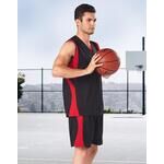 Description: Mesh. Wicks moisture away from the body. V-neck collar with centre patch that can be embroidered with logo. Contrast colour front and back shoulder inserts and accent piping. Double needle hemmed arm holes and bottom.