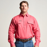 KILCOY | Mens Half Button Long Sleeve Work Shirt - Hibiscus Pink OBCMWS001-HIB