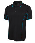 This stylish sports polo features contrast corded piping lines down front and back, plus contrast tipping on knitted cuffs and collar.
